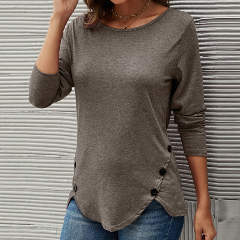Irregular Button Long Sleeve Crew Neck Casual T-Shirt