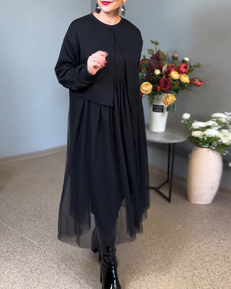 Irregular mesh stitching solid color elegant dress