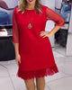 Solid color mesh stitching sequin dress