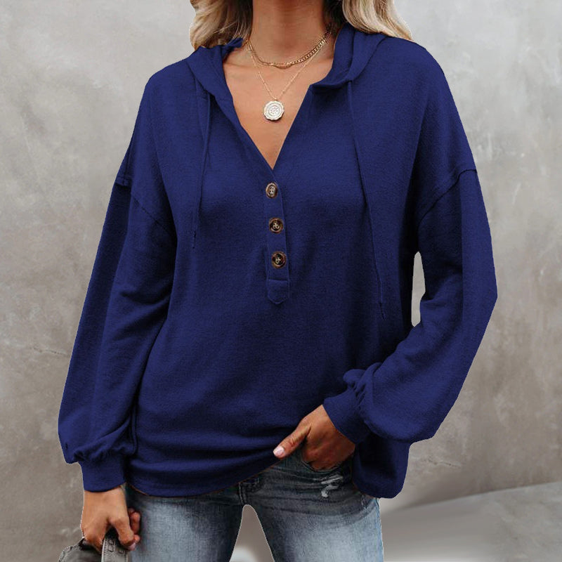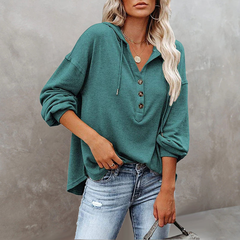 V-Neck Long Sleeve Loose Sports Hoodie