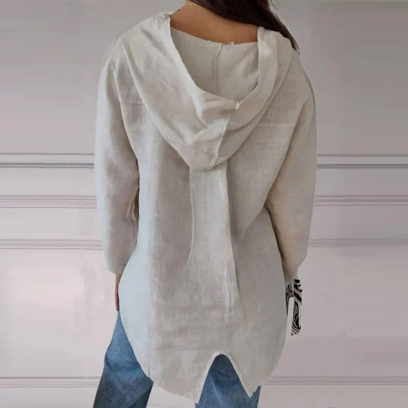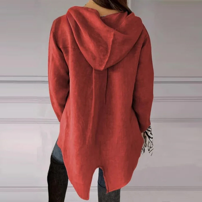 The single button serves as a decorative accent, adding a touch of refinement to the overall design. Complete with a hood for added warmth and versatility.