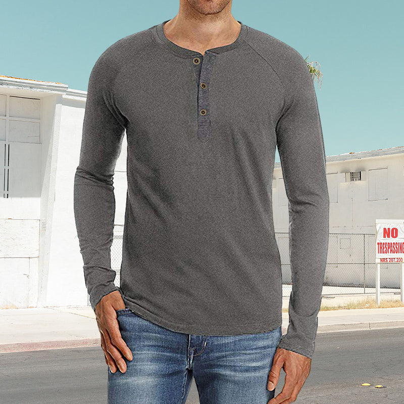 • 1 * Henley Pullover Long Sleeve T-Shirt