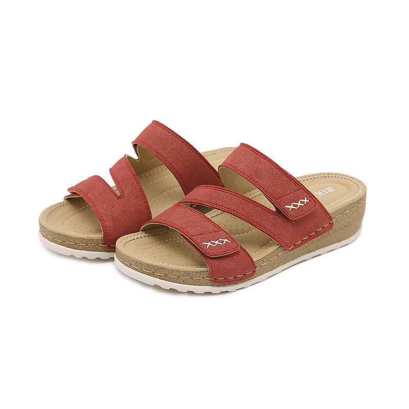 The cushion-like, double-padded memory foam insole is very soft. And the sandal is easy to combine. Don't worry about that.