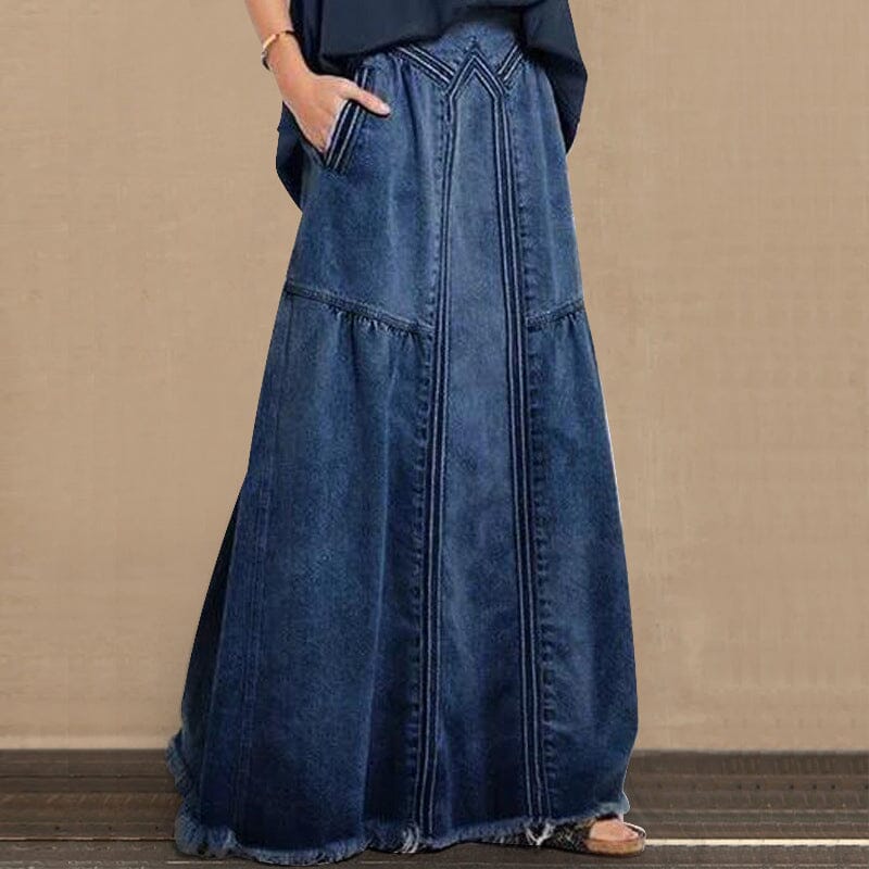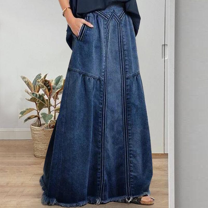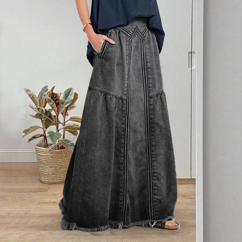 Women Distressed Solid Color Elastic Waist Loose Denim Skirt