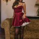 Meet the dress in our spectacular seasonal velvet. It's a gorgeous mini dress in burgundy that's ready to turn heads and transform any occasion into a soirée. This stunning piece features a cupped, corset-style bodice that is perfectly shaped to accentuate your curves and emphasize your silhouette, while the dainty lace embellishment adds a touch of romantic playfulness.