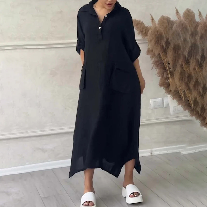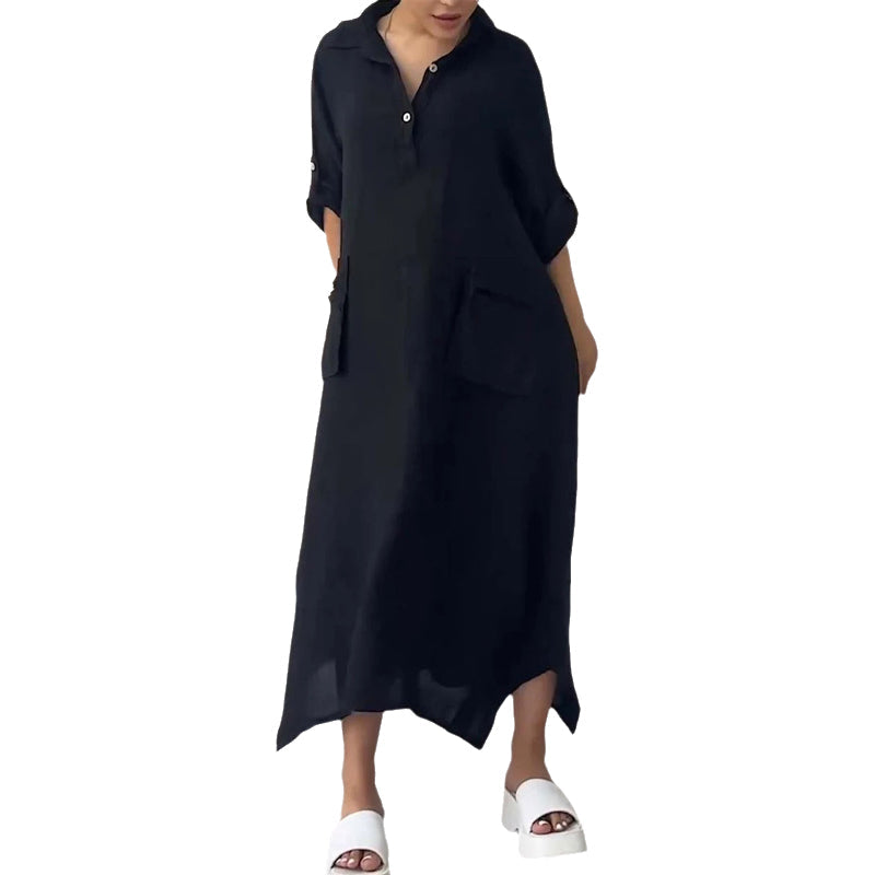 👗 Elevate your wardrobe with Cotton Linen Solid Colour Lapel Dress!