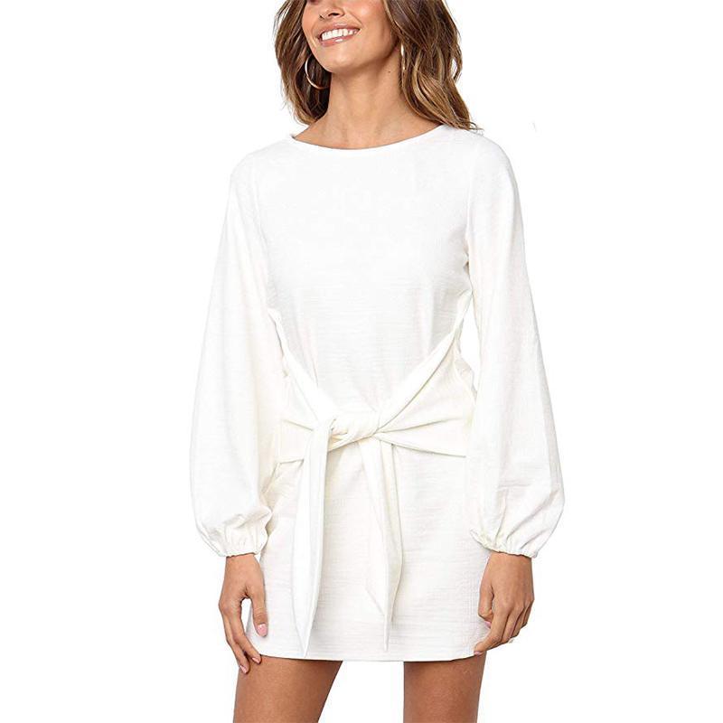 • This Style Has a Round Neckline, Full Length Lantern Sleeves, a Tie up Waist at the Front. Mini Length