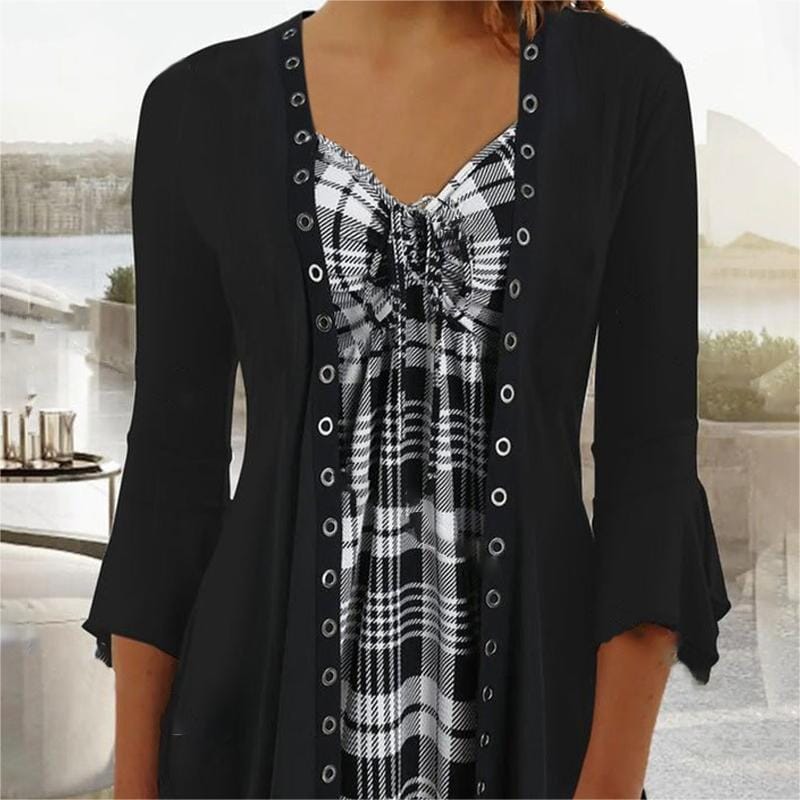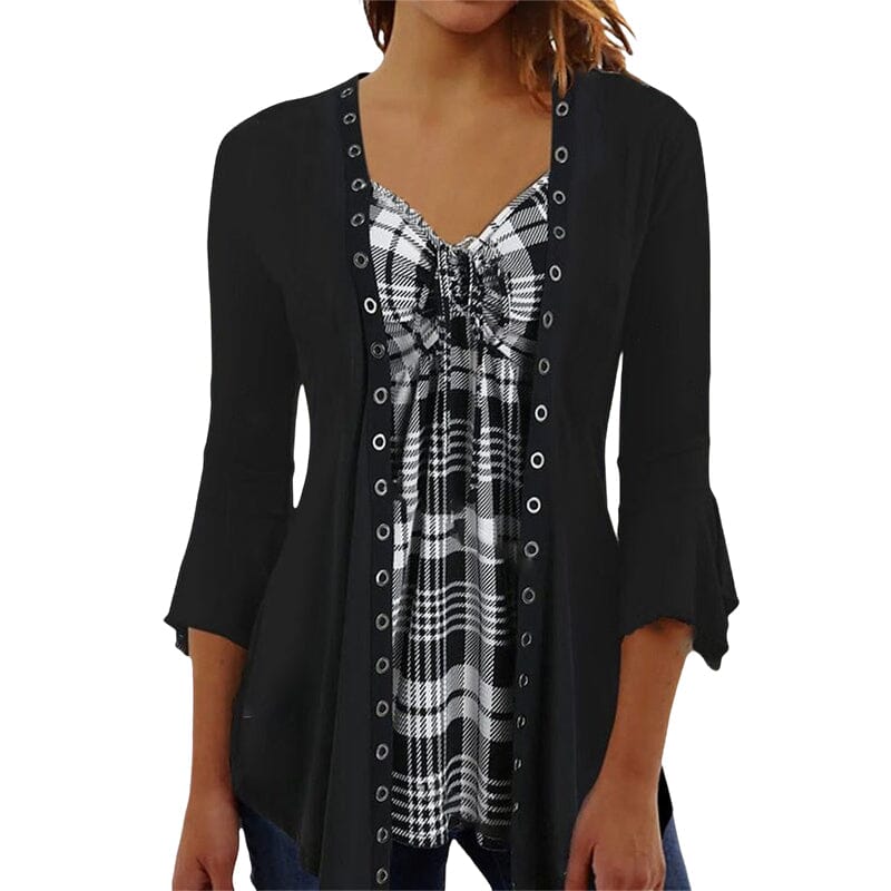 • 1 * Plaid Patchwork 3/4 Sleeve Top