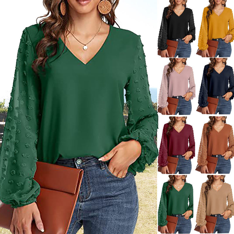 V-neck Long-sleeve Chiffon Shirt