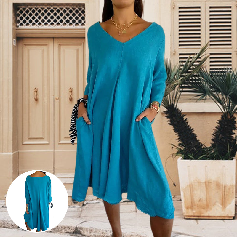 Women's V-Neck Side Pocket Dress